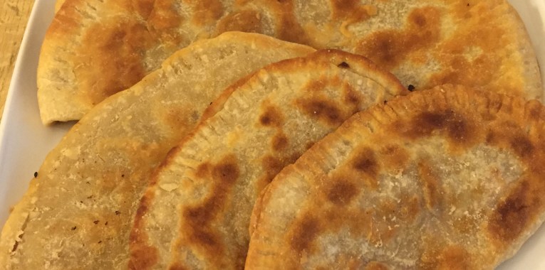 Many of the popular dishes in Turkmenistan today are from Soviet influence such as Pelmani (meat dumplings), Peroshki (rice, meat, or vegetables cooked in dough) and Borsch (beet soup). I also came across Borek (dumplings in soup), Plov (fried rice with lamb and carrots) , Gelin Budu – Bride’s Thighs (Rice Croquettes) and Palaw (Turkmen Pilaf). I decided to make Gutap (savoury filled dumplings) that are like a flattened pasty. They were somewhat fiddly to make and sadly, didn’t really hit the mark on flavour. The first couple I made were too big, so it’s easier the smaller you make them.