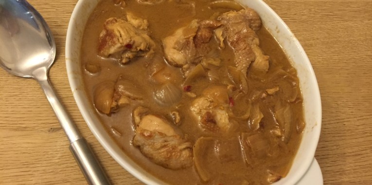 Turn the heat up and fry the chicken until it’s a deep golden colour on all sides